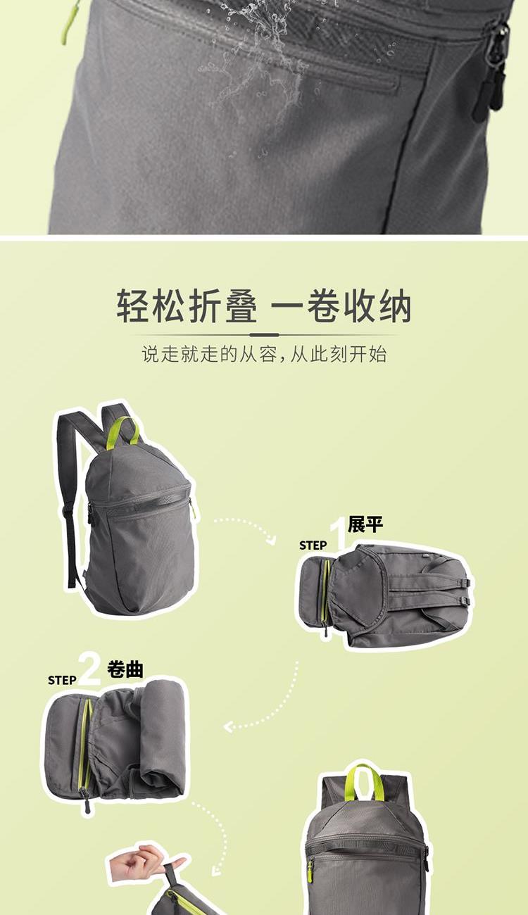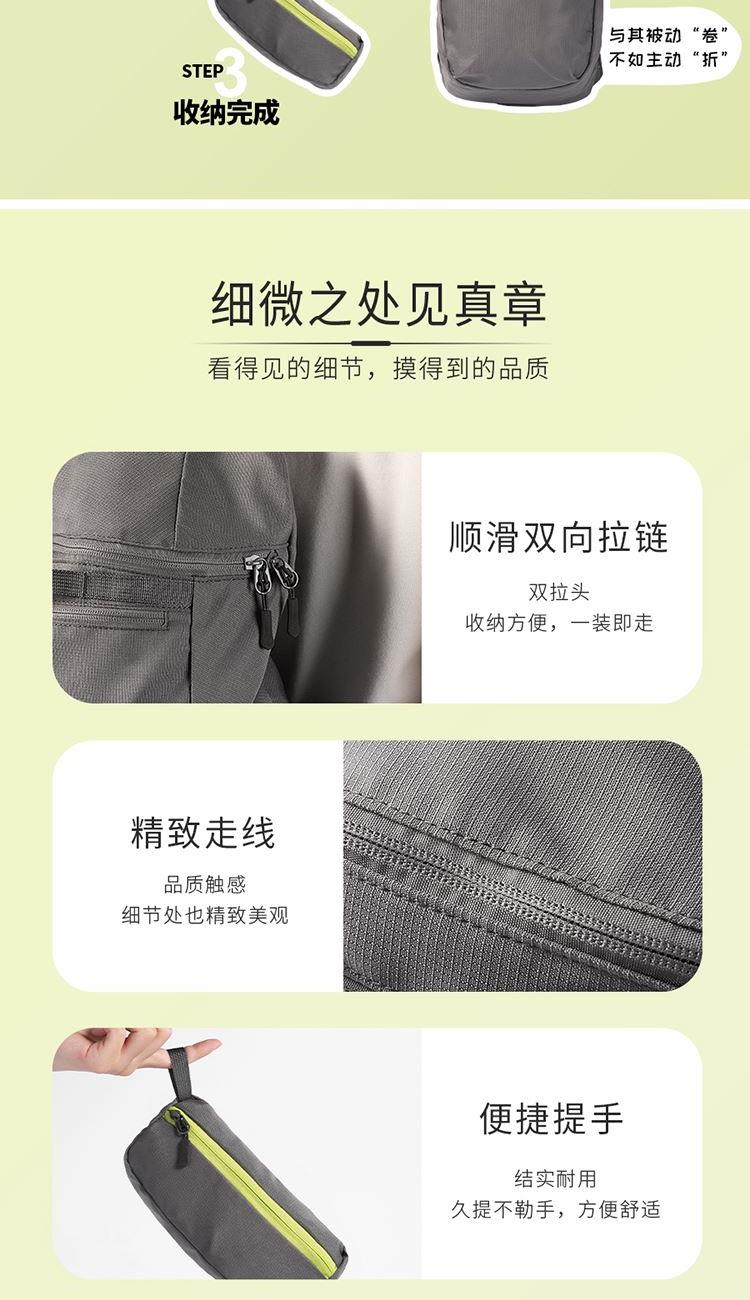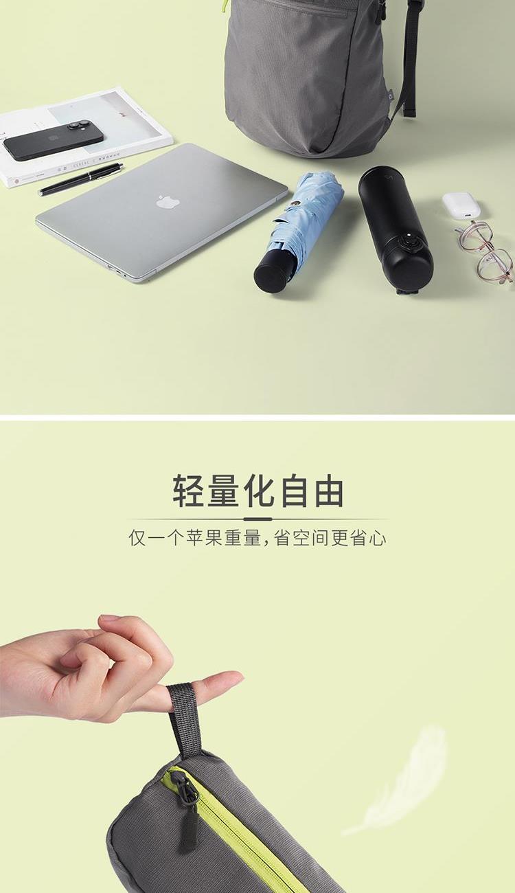 2.一鍵折疊,收納無憂: 輕松折疊成小巧體積,節(jié)省空間,通勤旅行隨取隨用。