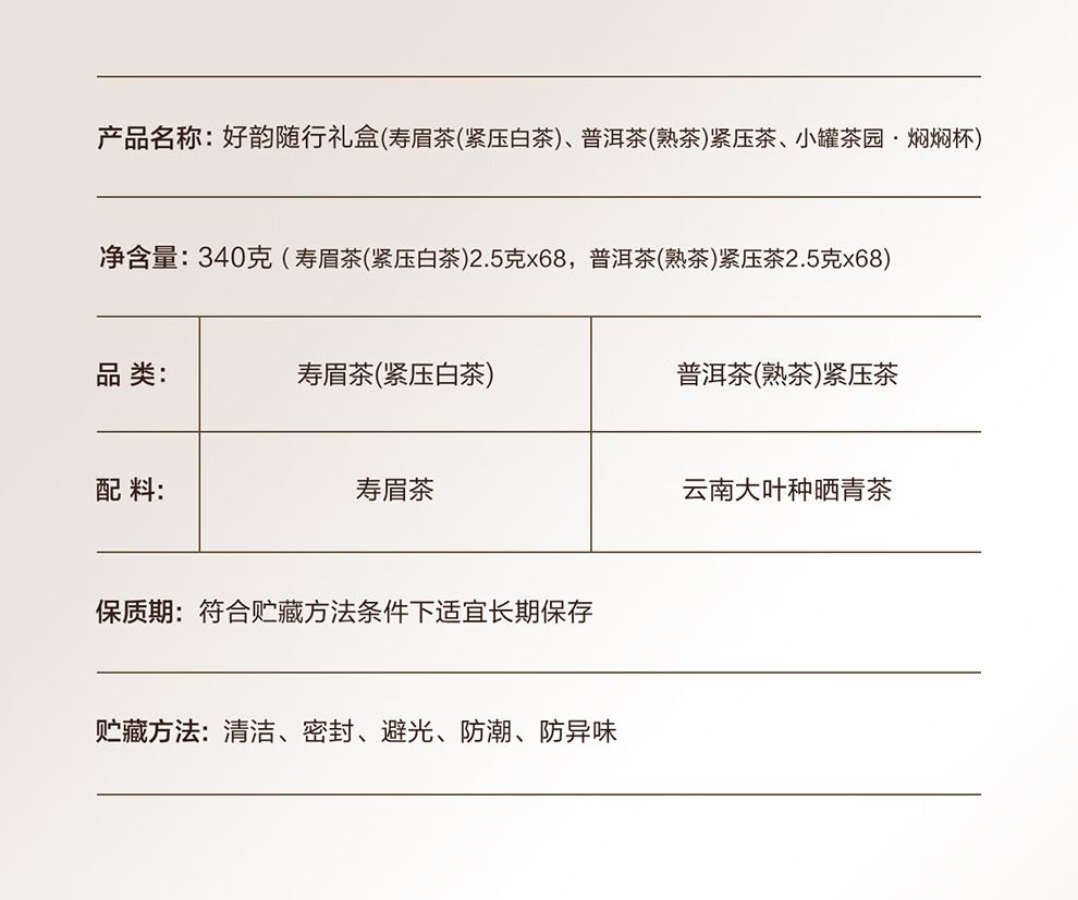 好韻隨行禮盒:內(nèi)含68餅熟普+68餅壽眉+400ml燜泡杯,心意十足,愿您好茶相伴,好韻隨行。
