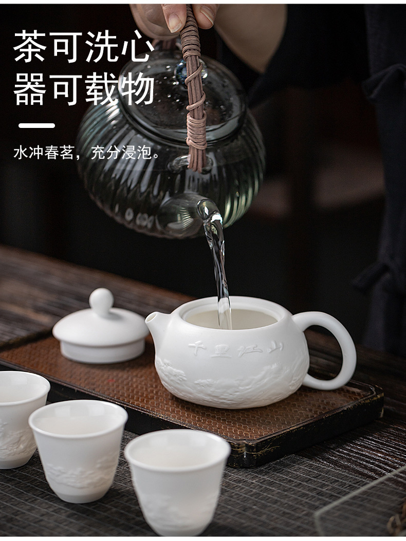 鵬翼13頭千里江山浮雕功夫茶具大套裝 鵬翼13頭千里江山浮雕功夫茶具大套裝