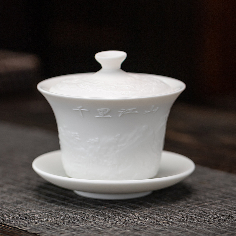 配制:1壺 8杯 1公道杯1茶托1茶漏1蓋碗 2證書 1手提禮盒 規(guī)格: 蓋碗:10.5*9cm 壺13*8.5cm 茶杯:6*4.5cm 公道杯:8.5*8.2cm 茶托茶漏:8.5*5.5cm 推薦說明:手工浮雕千里江山茶具,栩栩如生。羊脂玉瓷,瓷質細膩溫潤,觸感舒適。似凝脂,如美玉。在陽光照射下,呈半透明羊油狀,潔白滋潤,故稱羊脂玉,乃瓷中佳品。錦盒裝,時尚精致上檔次。