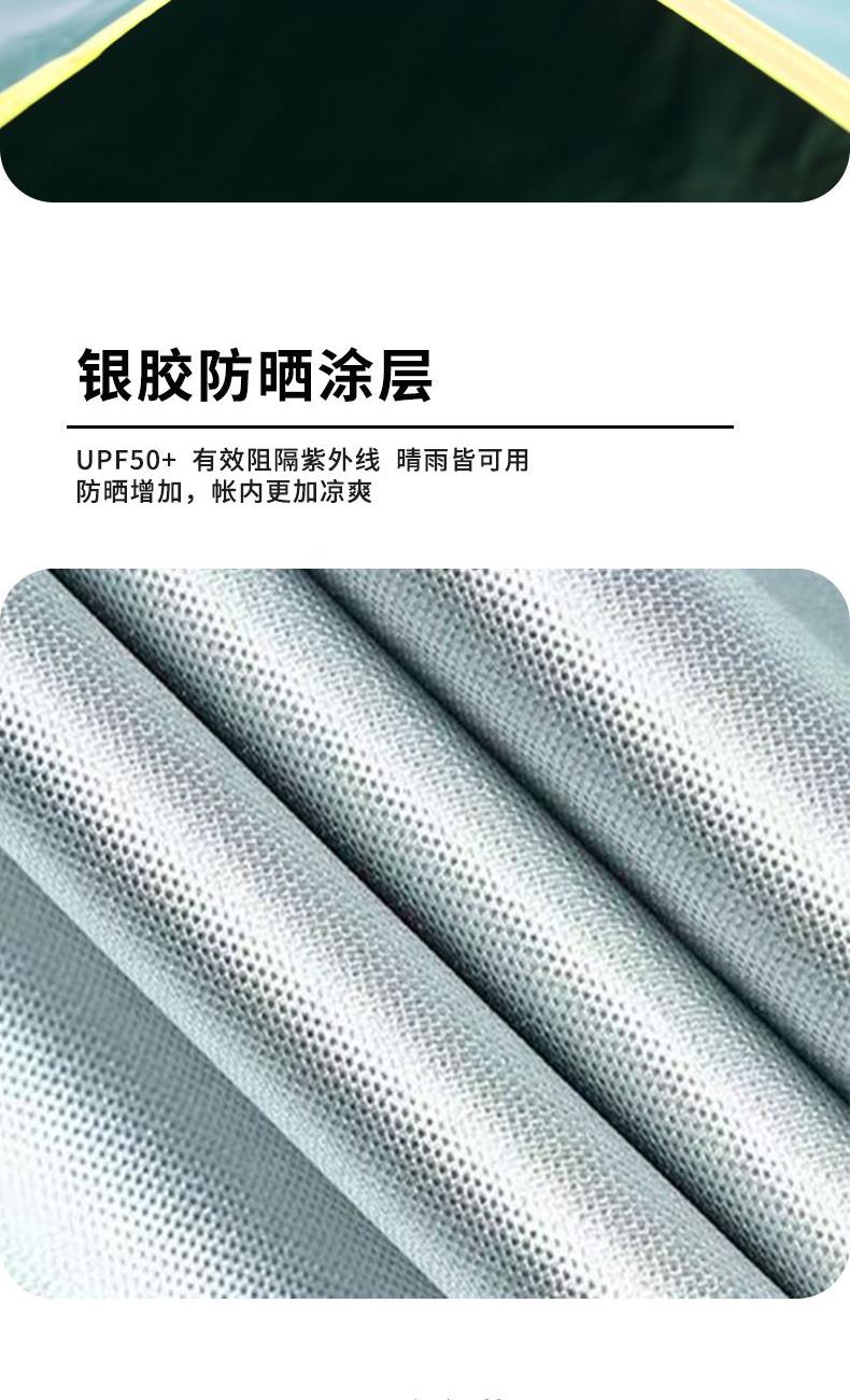 1.雙層自動(dòng)帳篷,便攜收納,防潑水潮濕,銀膠防曬