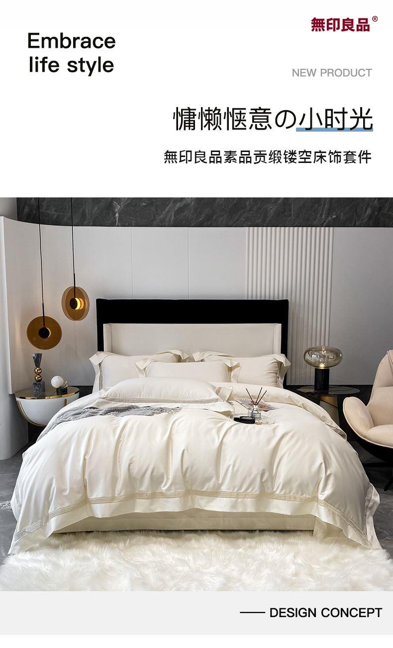 無印良品素品貢緞鏤空床飾套件WYLP-TJ5063