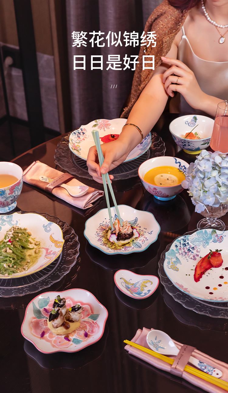 4. 調味碟外形和花面呼應又可當筷子架,貼心實用