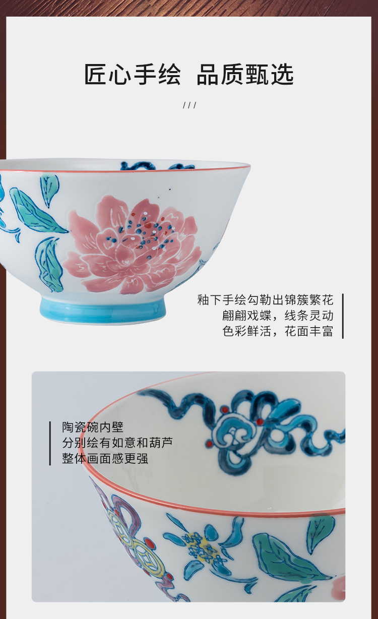 3. 陶瓷碗內壁分別繪有如意和葫蘆,整體畫面感更強