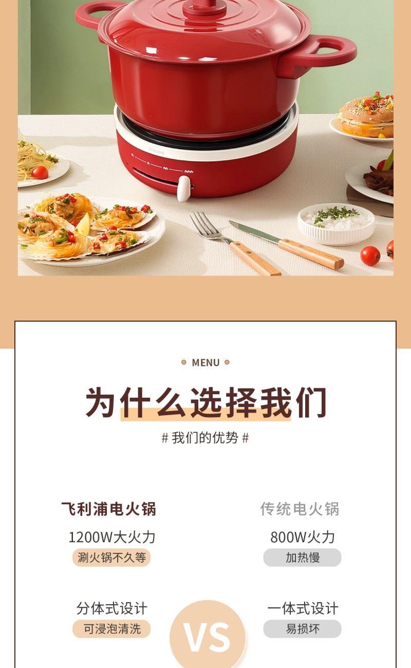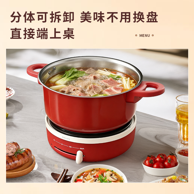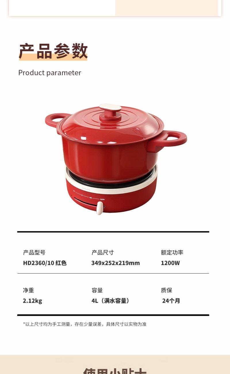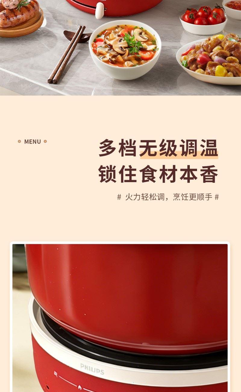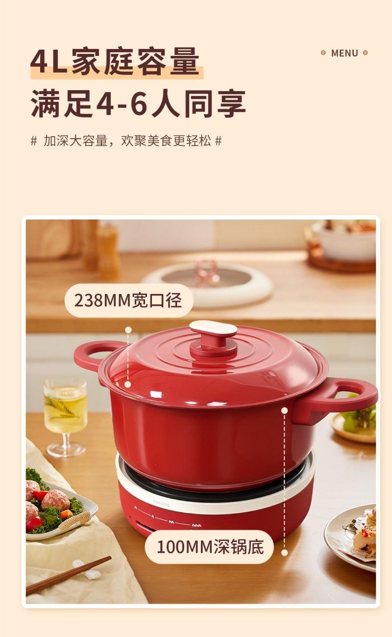 飛利浦電火鍋電煮鍋家用4L多功能涮肉鍋HD2360/10 禮品已成功加入PPT!
