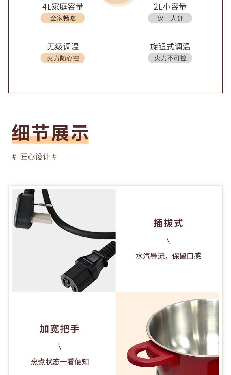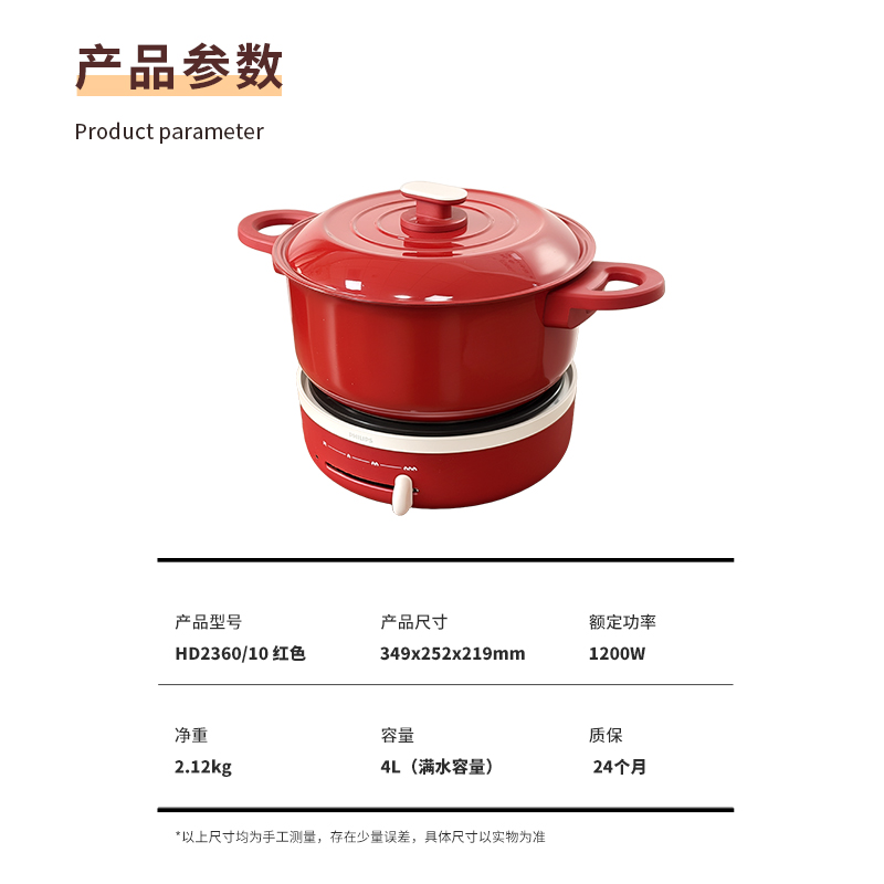 鍋體材質(zhì):不銹鋼 顏色:紅色系 涂層材質(zhì):0涂層 額定電壓:220V 電源線長(zhǎng):1m 額定功率:1200W