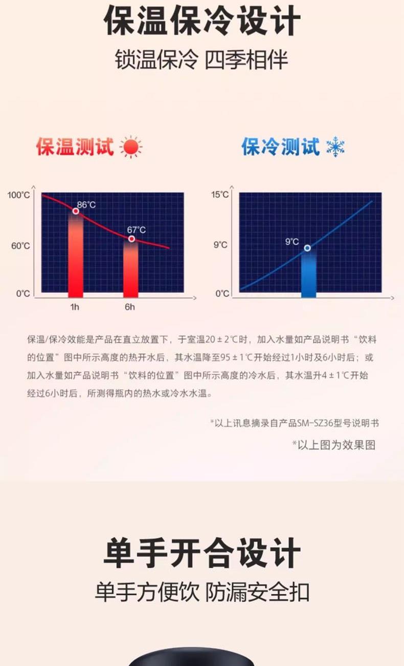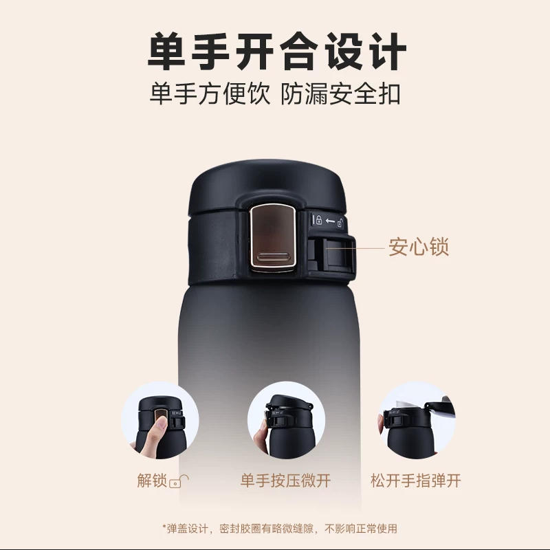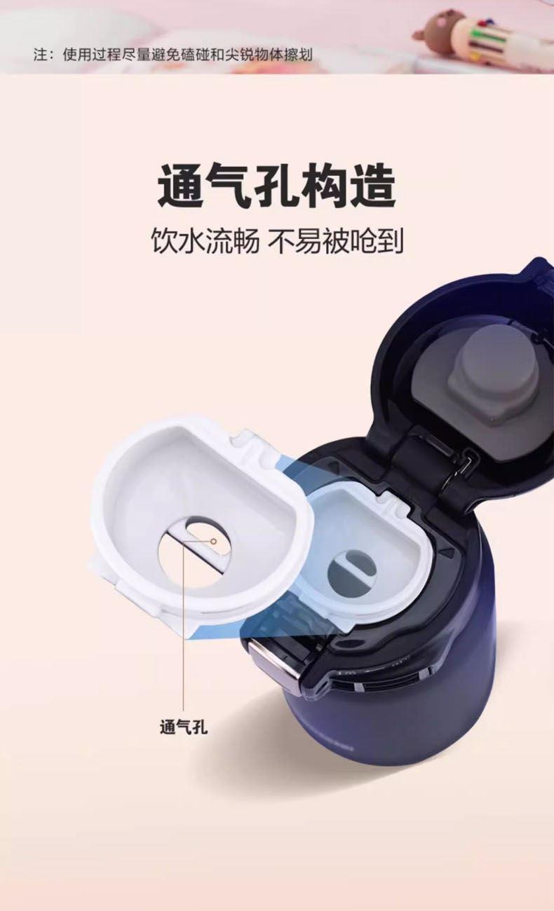 1.單手開合設(shè)計方便飲水,防漏安全扣