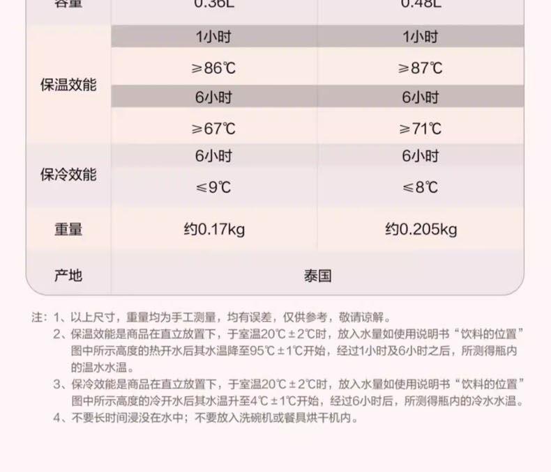 保溫效率:87℃/1h、71℃/6h