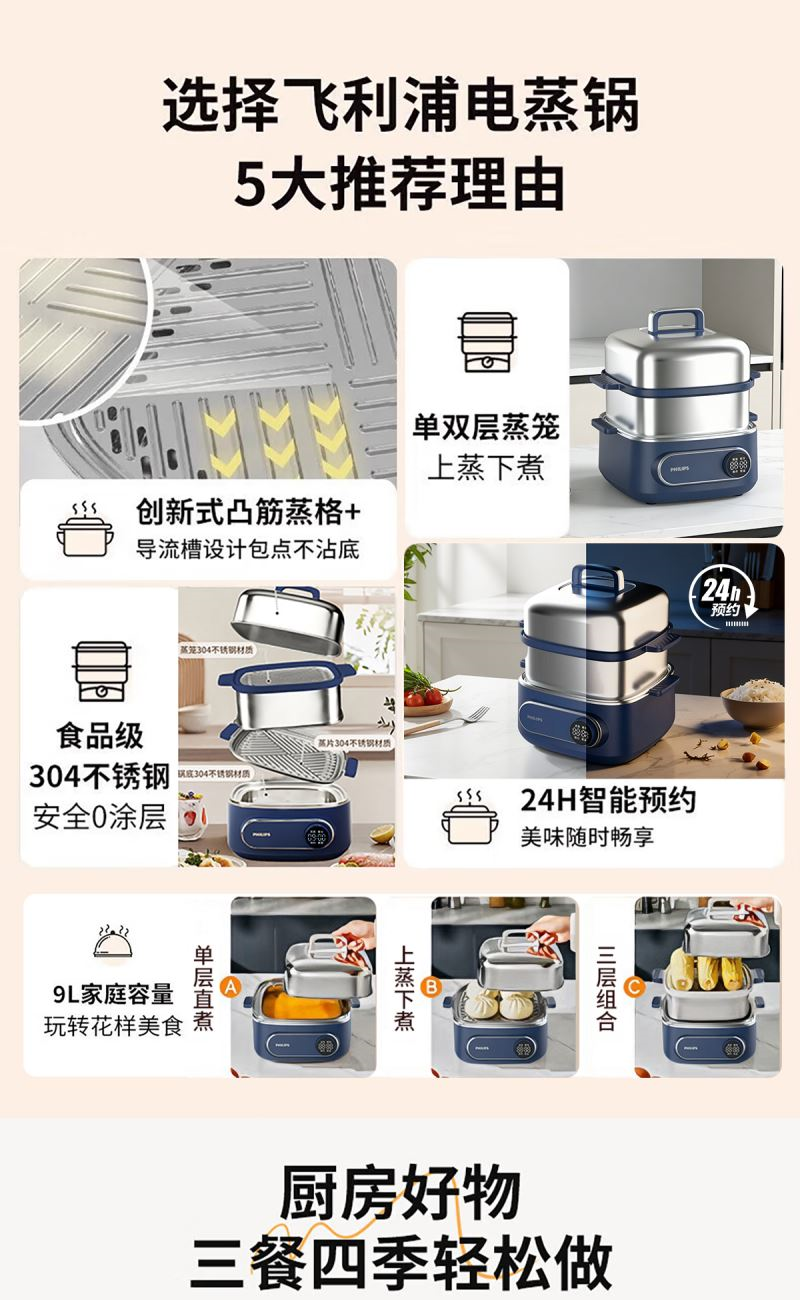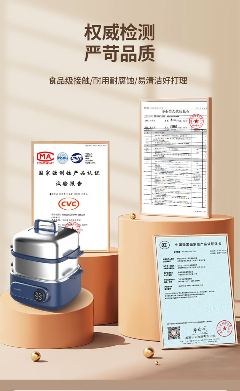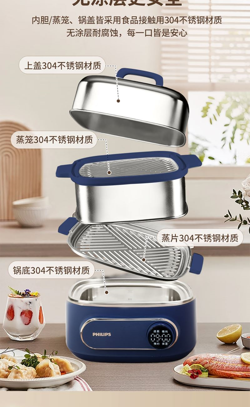 飛利浦電蒸鍋多功能鍋家用不銹鋼HD3688 禮品已成功加入PPT!