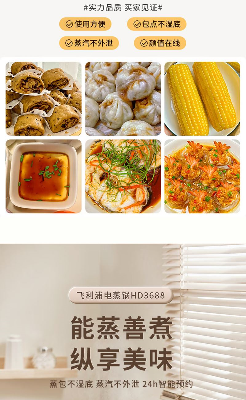 飛利浦電蒸鍋多功能鍋家用不銹鋼HD3688 飛利浦電蒸鍋多功能鍋家用不銹鋼HD3688