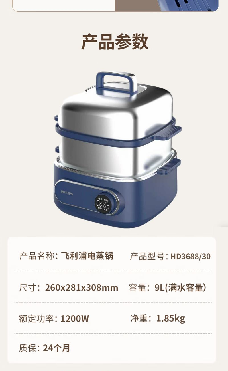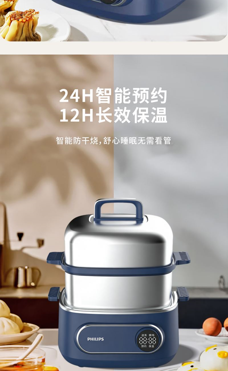 飛利浦電蒸鍋多功能鍋家用不銹鋼HD3688
