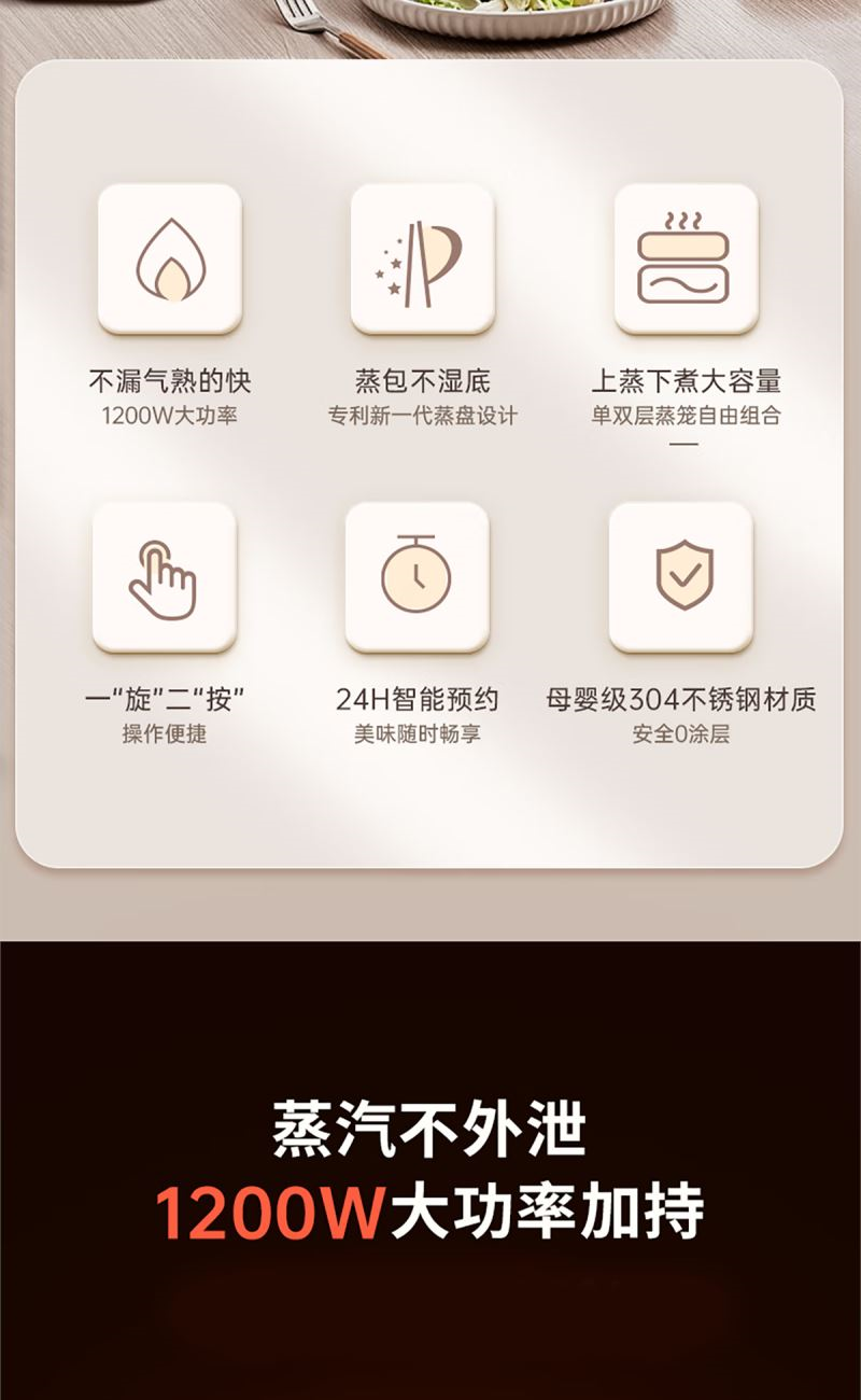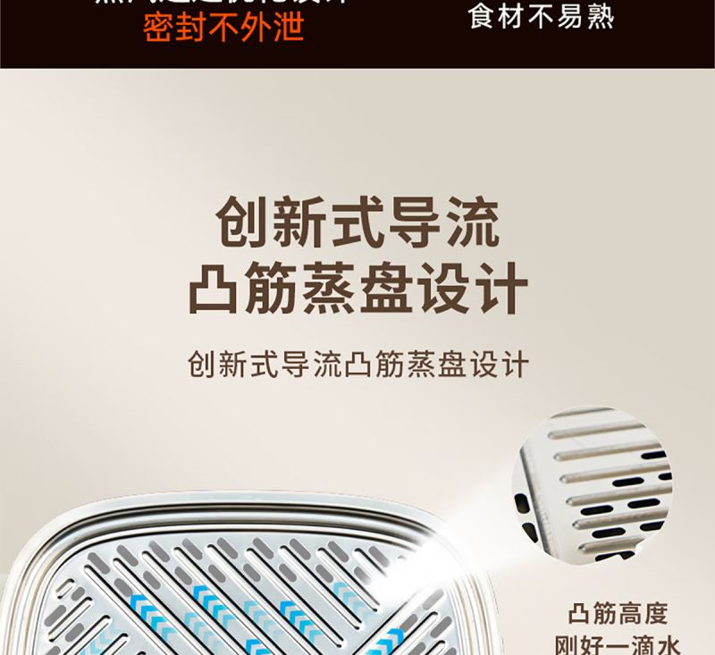 創(chuàng)新式凸筋蒸格+導流槽設(shè)計包點不沾底