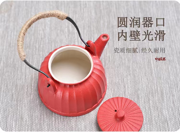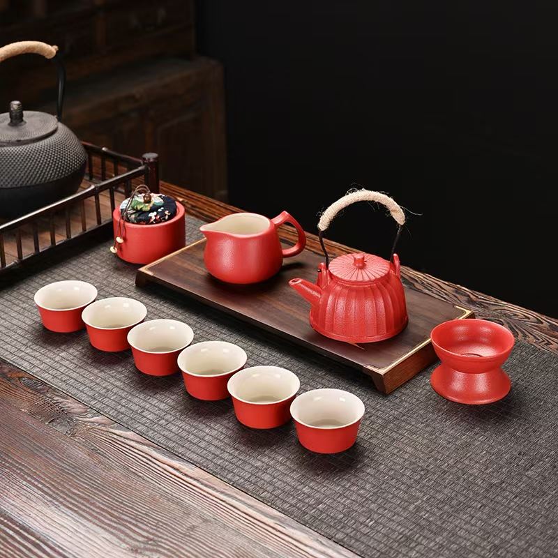鵬翼開門紅浮雕提梁壺粗陶茶具大套裝